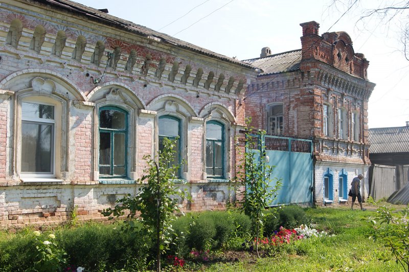 По улице Коммунистической от дома Мальцева идём на восток. Некоторые дома без ремонта и заброшены, например особняк Мамина в стиле модерн.