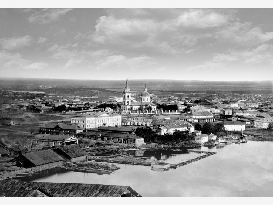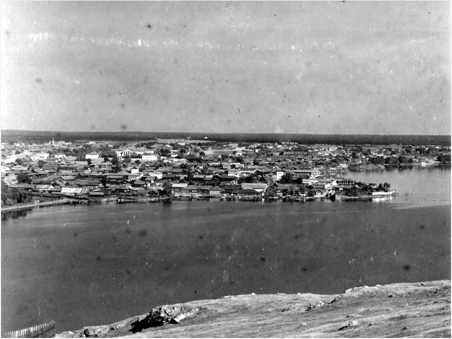 Интересно взглянуть на город с тех же мест с которых были сделаны старые фото и увидеть как он изменился. К сожалению в силу этих изменений выбрать нужный ракурс не всегда возможно Вид с Лисьей горы на плотину и центральную часть посёлка. Фото 1890-х годов