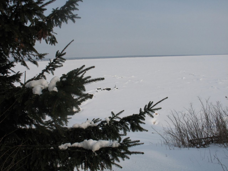 одинокое дерево на Паттальском мысу острова Большой Березовый, зима