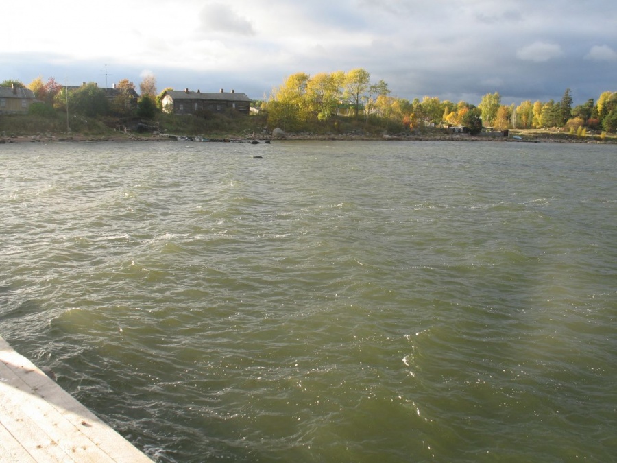 берег острова в черте поселка, вид с поселкового пирса