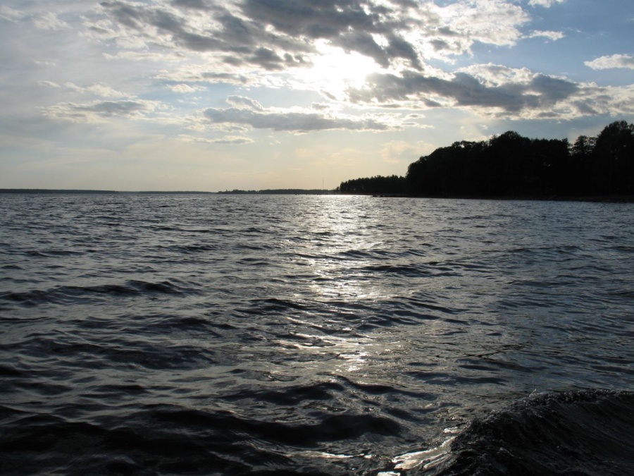 вечер в проливе Бьеркезунд, Финский залив. Глубина фарватера- до 25 метров. В нефтеналивной порт Приморска заходят океанские танкеры водоизмещением до 300 000 тонн.