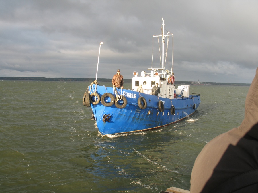 Кораблик "Равица". Перевозил пассажиров на остров в начале 2000-х. Принадлежал НПО Уран.