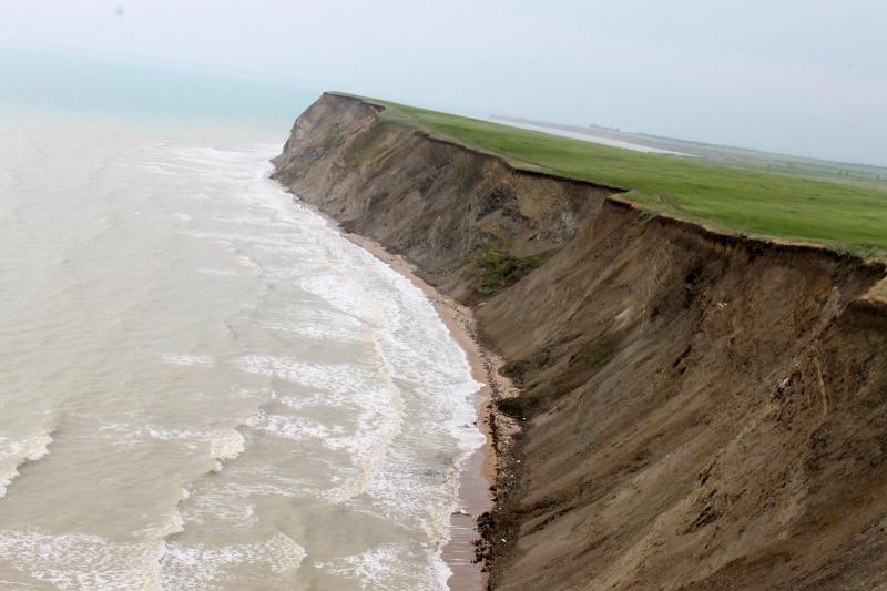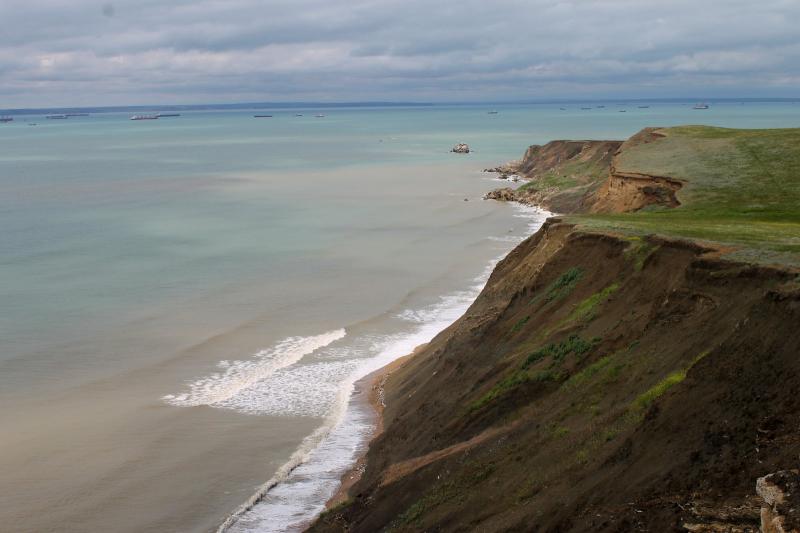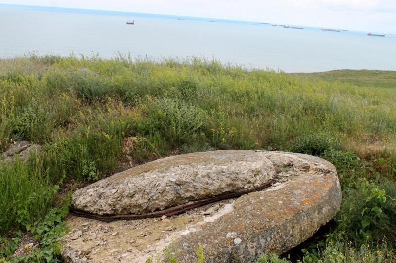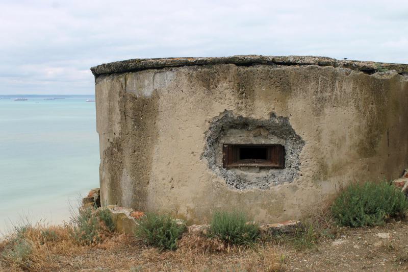 В этом месте море активно наступает на берег, съедая ежегодно около 1 метра. Подземная часть наблюдательного пункта уже нависает над обрывом.
