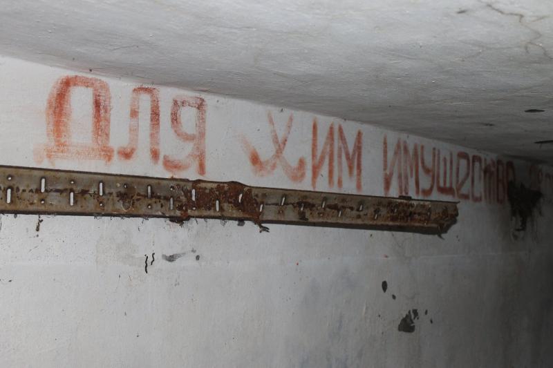 Сюда слили для хранения три цистерны мазута. Хоть как-то решили использовать после войны это сооружение Мазута утёкло больше половины.