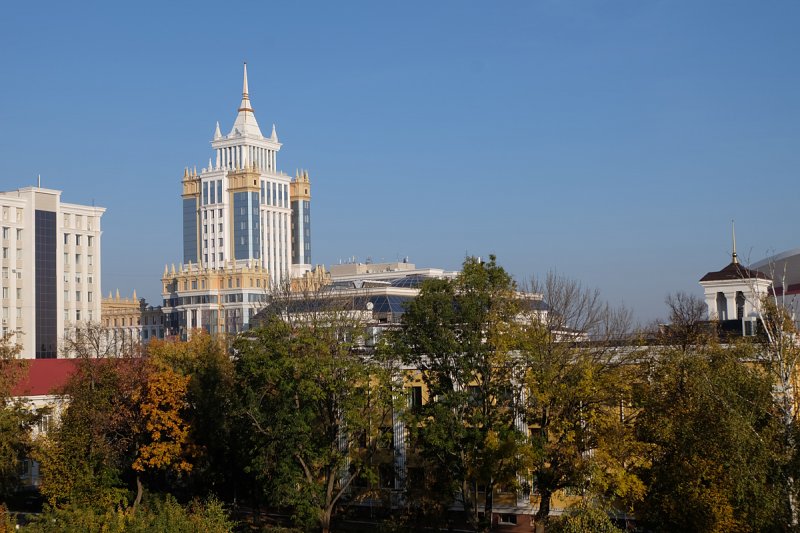 Утром следующего дня. Из окна гостиницы "Саранск" видна башня МГУ - Мордовского университета.