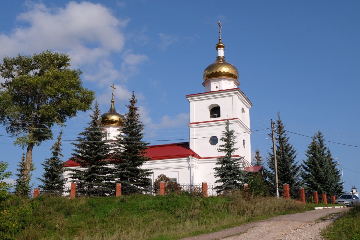 Вид от пруда на церковь Дмитрия Солунского. В 1991 году, к 200-летию со дня рождения С.Т. Аксакова, реставрация храма была завершена.