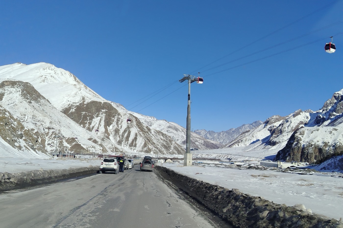 Канатная дорога из села Алмасиани, длинная трасса, которая ведёт на Главный хребет, откуда можно спуститься в Гудаури.